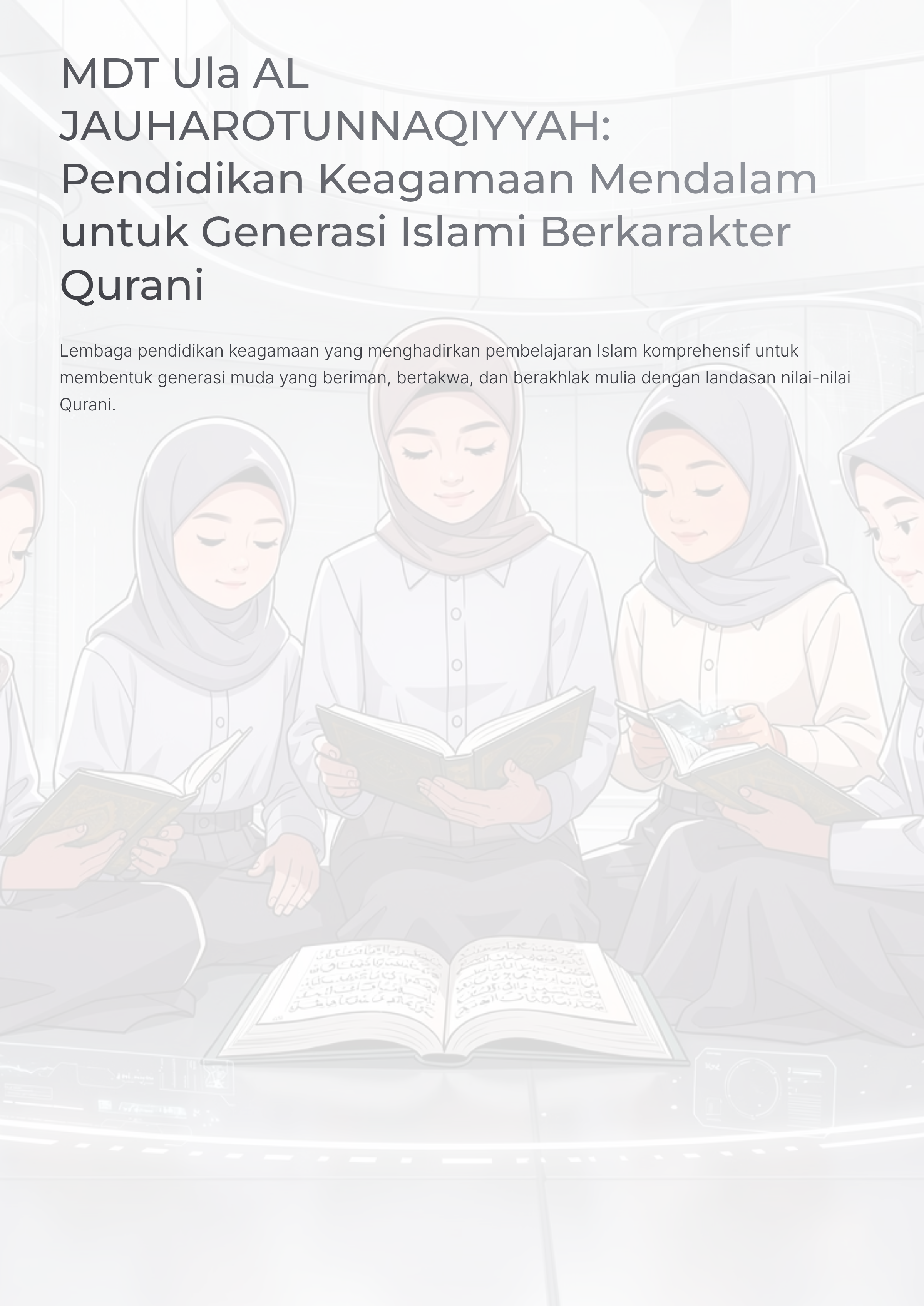 Komitmen Kami: MDT Ula AL JAUHAROTUNNAQIYYAH terus berinovasi dan meningkatkan kualitas pendidikan keagamaan untuk menghasilkan generasi Islami yang unggul, berkarakter Qurani, dan siap menjadi pemimpin masa depan yang berakhlak mulia.